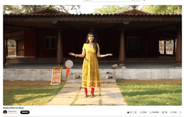 In the book Sapiens, Yuval Noah Harari notes that traditional civilizations spoke the language of stories and narratives and coded their knowledge in this form. He also notes that since the scientific revolution, the language of Sapiens has shifted to Mathematical Formule. All contemporary systems of knowledge use the language of mathematics. This story Musical Story on Chess by accomplished storyteller Deepa Kiran forms a bridge between these two systems – the language of stories and the language of mathematics. In Deepa Kiran’s expert narration, we are transported to the Kingdom of Raja Shorobatra. The King has no work or passtime except playing chess. He can’t be bothered with royal duties and remains settled in his chessgame. Meanwhile the inventor of Chess, a local sage resides in a gurukul. The King is informed of this and promptly meets the sage who invented Chess. But there is a twist to the tale and the video must be watched for this. But what we can see, perceive and learn from the ancient folktale is not just the complexities of mathematics and the perceptions on the game of chess and the games of maths as the very games of life. From the country that gave the world zero, comes this ancient maths story. Deepa Kiran’s unique presentation with dance, music, a host of musical instruments, songs including a famous one by Meera Bai take us to the roots of Indian culture – where in the serene, mantric culture of the seers we find profound investigations into the nature of the universe which can only be articulated in the form of mathematical riddles. A must watch for all culture, storytelling and mathematical enthusiasts.